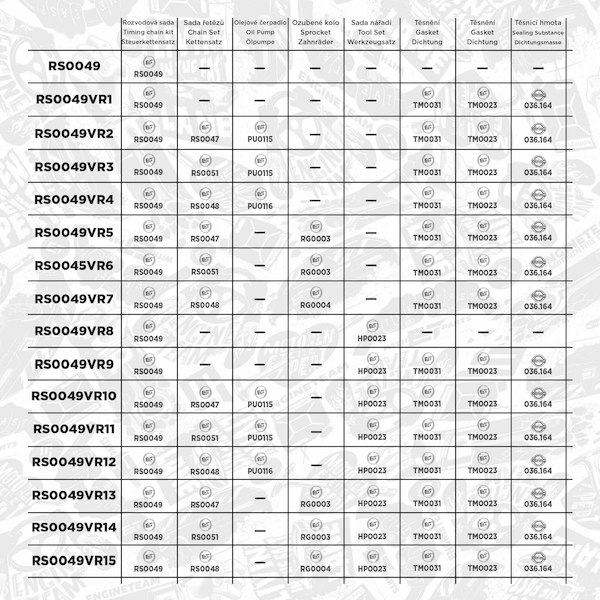 - Doplnkovy vyrobek/ doplnkove info:s tesnenim, s řetězem olejové pumpy, s ozubenými koly, s montáżním nářadím
